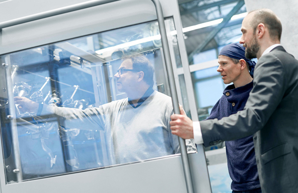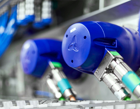 Für den Einsatz in den Maschinen von BAADER sind unsere rotativen Antriebseinheiten mit einem erhöhten Korrosionsschutz ausgestattet. Besonders ist auch der mechanische Aufbau: Ein Präzisionsgetriebe und ein Synchron-Servomotor sind kupplungsfrei miteinander verbunden. Das ermöglicht nicht nur eine kurze Baulänge, sondern auch Bestwerte bei Dynamik, Drehmoment, Verdreh- und Kippsteifigkeit sowie Laufruhe. Diese Leistungsdichte überzeugte auch in Vergleichstests bei BAADER. Hier setzen sich unsere TPM+ souverän gegen Standardservomotoren mit Winkelgetrieben oder mit Riemenvorgelegen durch.