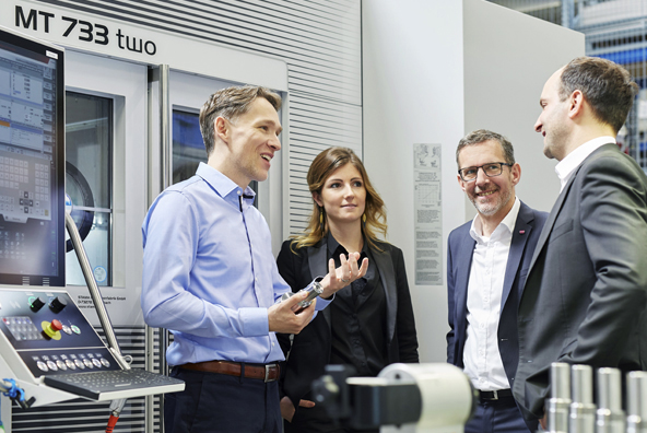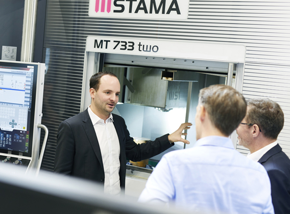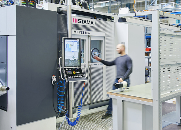 Auf der Messe AMB 2018 war es soweit: Die neue Fräs-Dreh-Zentrum-Baureihe MT 733 von STAMA feierte Weltpremiere. Das innovative Bearbeitungszentrum ermöglicht es, in einem Setup hochpräzise Abtriebswellen mit Gewinde, Bohrungen und speziellen Formgebungen auf sechs Seiten komplett zu bearbeiten. Die modulare MT-Plattform mit vier Typen setzt in Sachen Stabilität und Präzision neue Maßstäbe. Einen entscheidenden Beitrag dazu leistet unser in die B-Achse integriertes Galaxie® Antriebssystem mit seiner überlegenen Steifigkeit, Spielfreiheit und Positioniergenauigkeit. Umgesetzt wurde das anspruchsvolle Projekt im Rahmen einer Technologiepartnerschaft zwischen STAMA und WITTENSTEIN. Die Zusammenarbeit mündete in einen MT 733-Prototyp, der auch bei WITTENSTEIN getestet wurde.